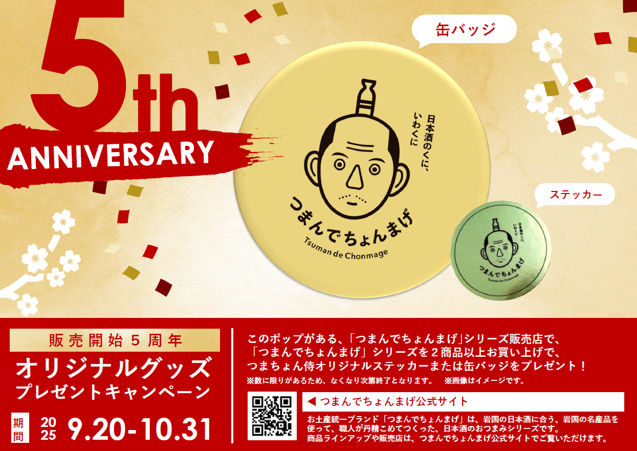 「キャンペーン実施店舗」にて「つまんでちょんまげ」シリーズを2商品以上お買い上げで、つまちょん侍オリジナルステッカーまたは缶バッジをプレゼント!
